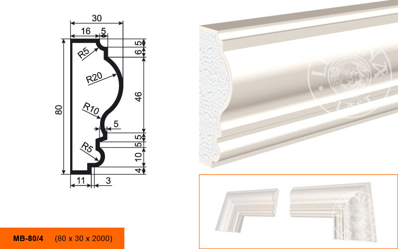 Фасадный Молдинг Lepninaplast МВ-80/4 В80хШ30хД2000 мм / Лепнинапласт. информация: