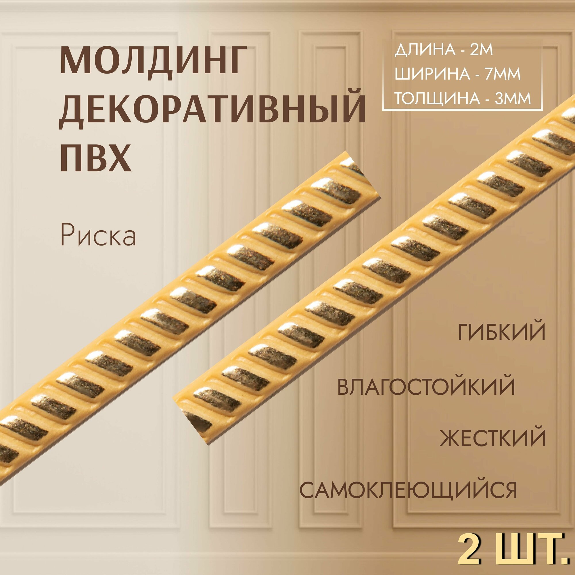 Молдинг для декора стен риска 3*7 мм (длина 2,0м) самоклеющийся бежевый (2 шт) декор дома и интерьера информация: