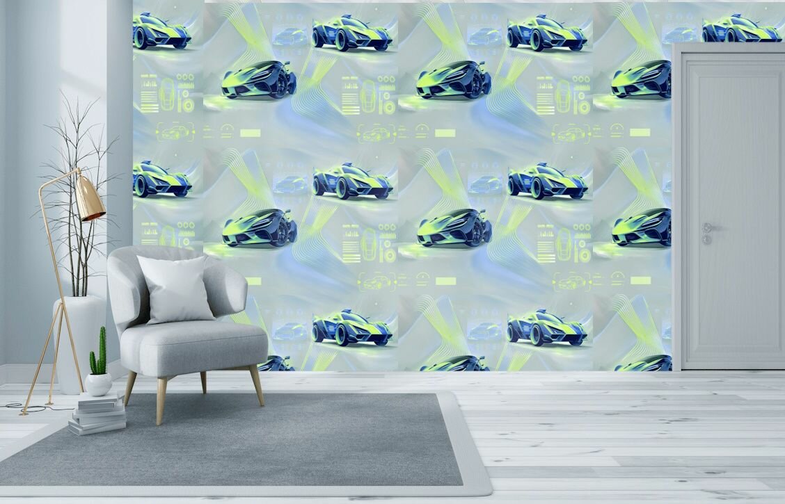 Обои виниловые в подростковую комнату с машинами104 УФ-свечение 1,06*10м метровые для мальчика бирюзовые 2 990 ₽