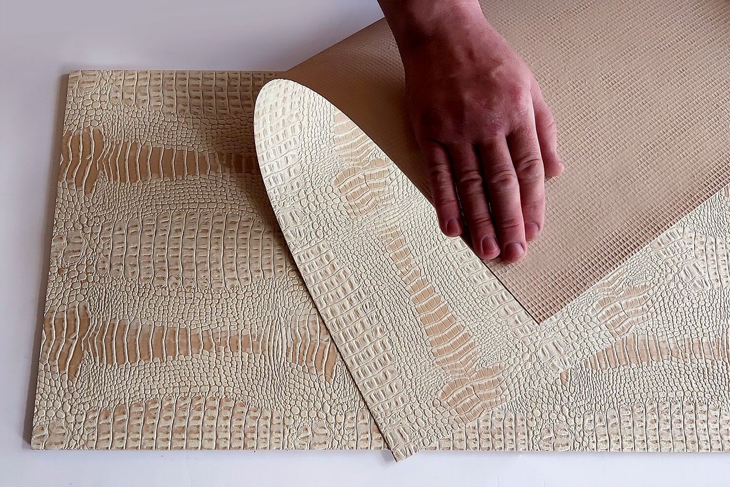 Отзывы на Бежевая кожа крокодила. Стеновые панели - гибкий акриловый гипс, полуглянец. Для интерьерного дизайна стен и отделки мебели.