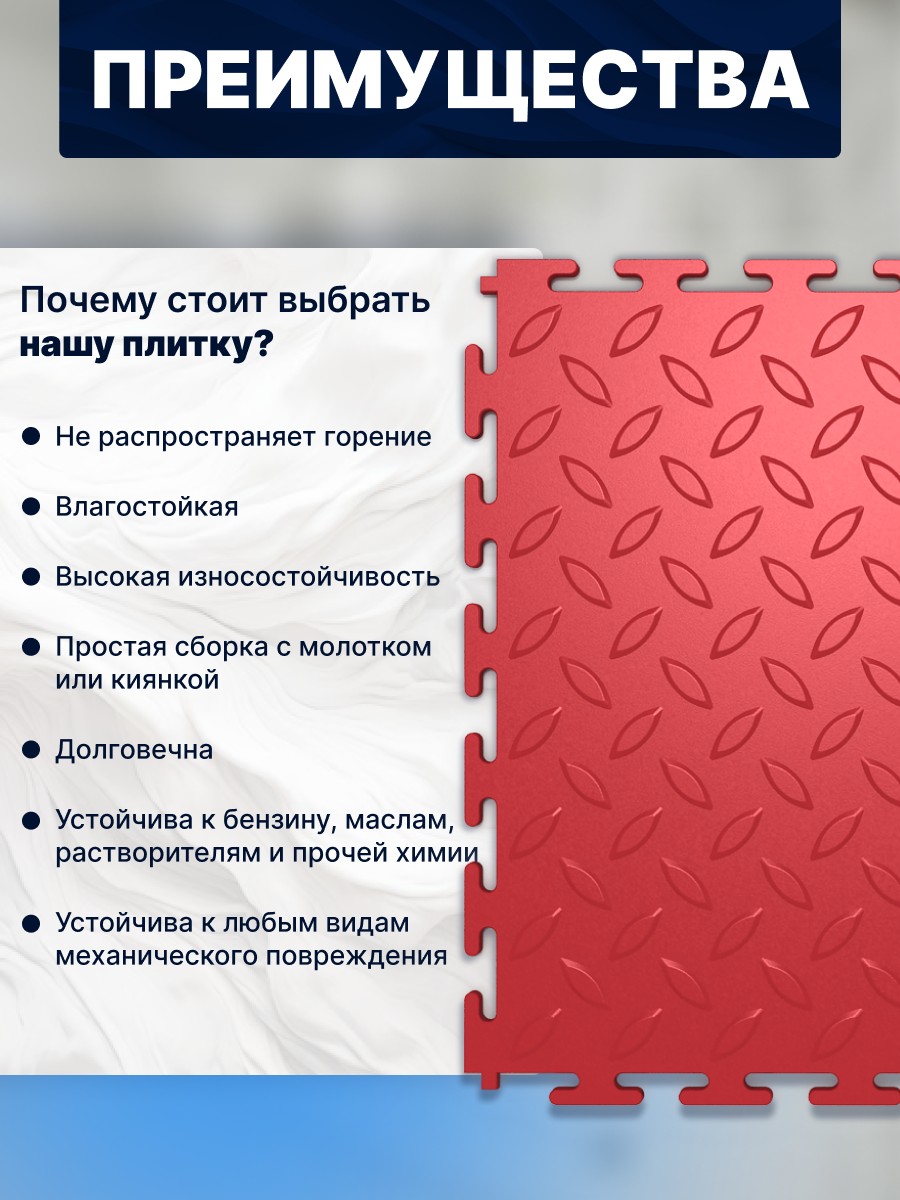 Отзывы на Плитка ПВХ модульная на пол LT mini red Diamond PVC 250X250X5мм 43 класс