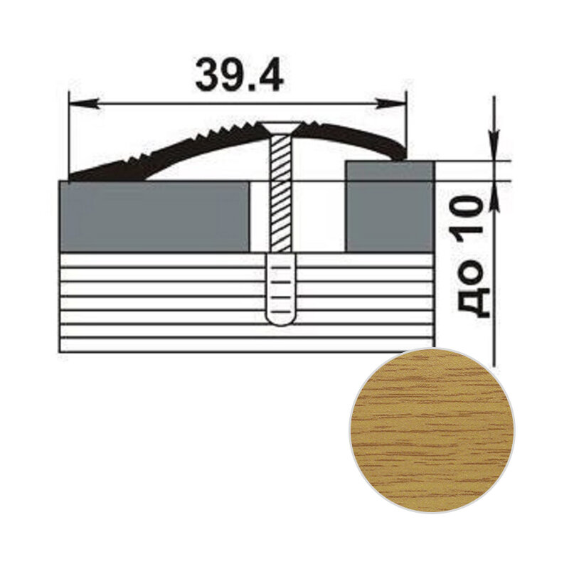 Порог напольный разноуровневый, ширина 40мм, перепад до 10мм, длина 1,8м, Мир профиля, АПС 005. 1800 (ОС-010)