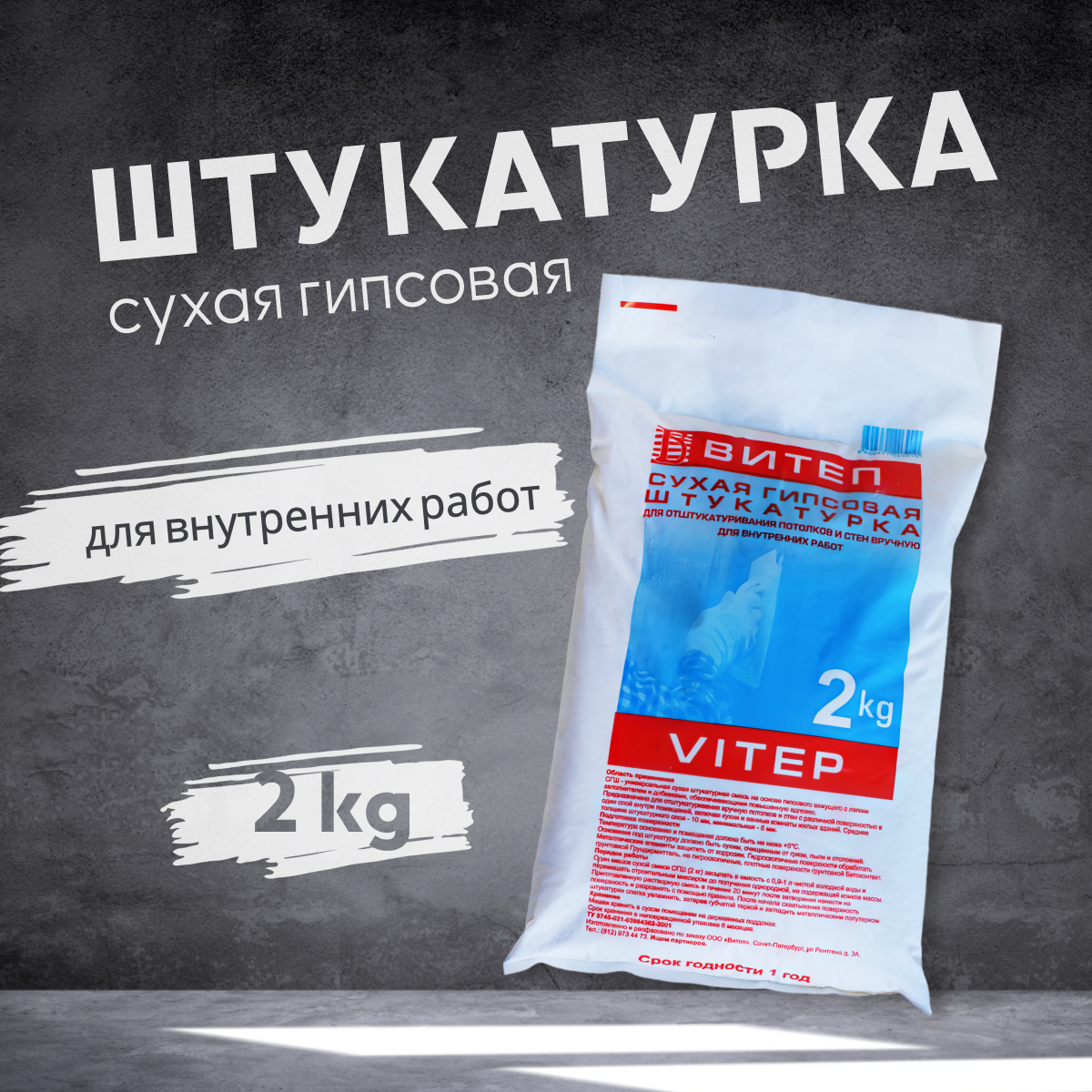 Штукатурка гипсовая Витеп - для стен и потолков, 2кг информация: