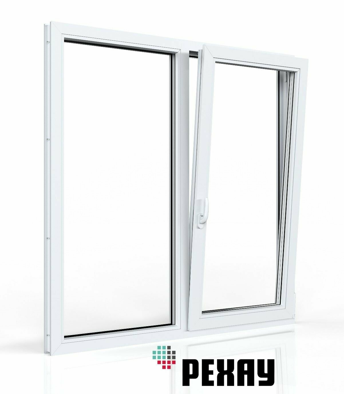 Пластиковое окно ПВХ РЕХАУ BLITZ 800х1100 мм (ВхШ), двухстворчатое, поворотно-откидное левое / глухое правое, однокамерный стеклопакет, белое