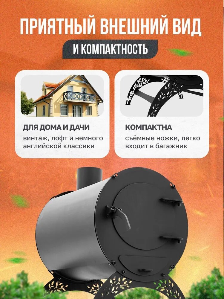 Отопительная печь-буржуйка VITA стандарт С конвекторами/ дровяная печь для дома / дачи / гаража / палаток