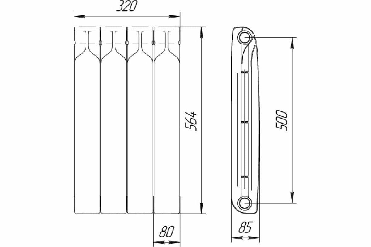 Радиатор биметаллический BILUX plus с межосевым расстоянием 500 мм, 4 секции, (700Вт), 7м2 (Россия) информация: