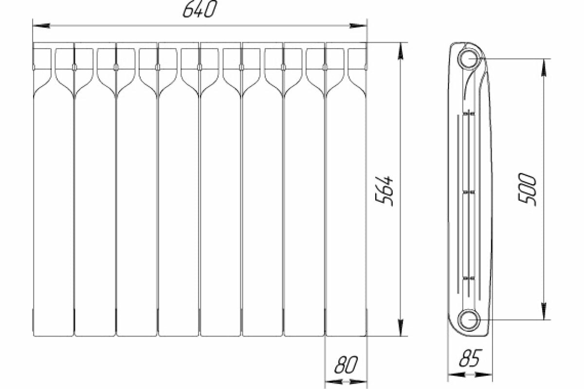 Радиатор биметаллический BILUX plus 500 мм, 8 секции, (1400Вт), 14м2 информация: