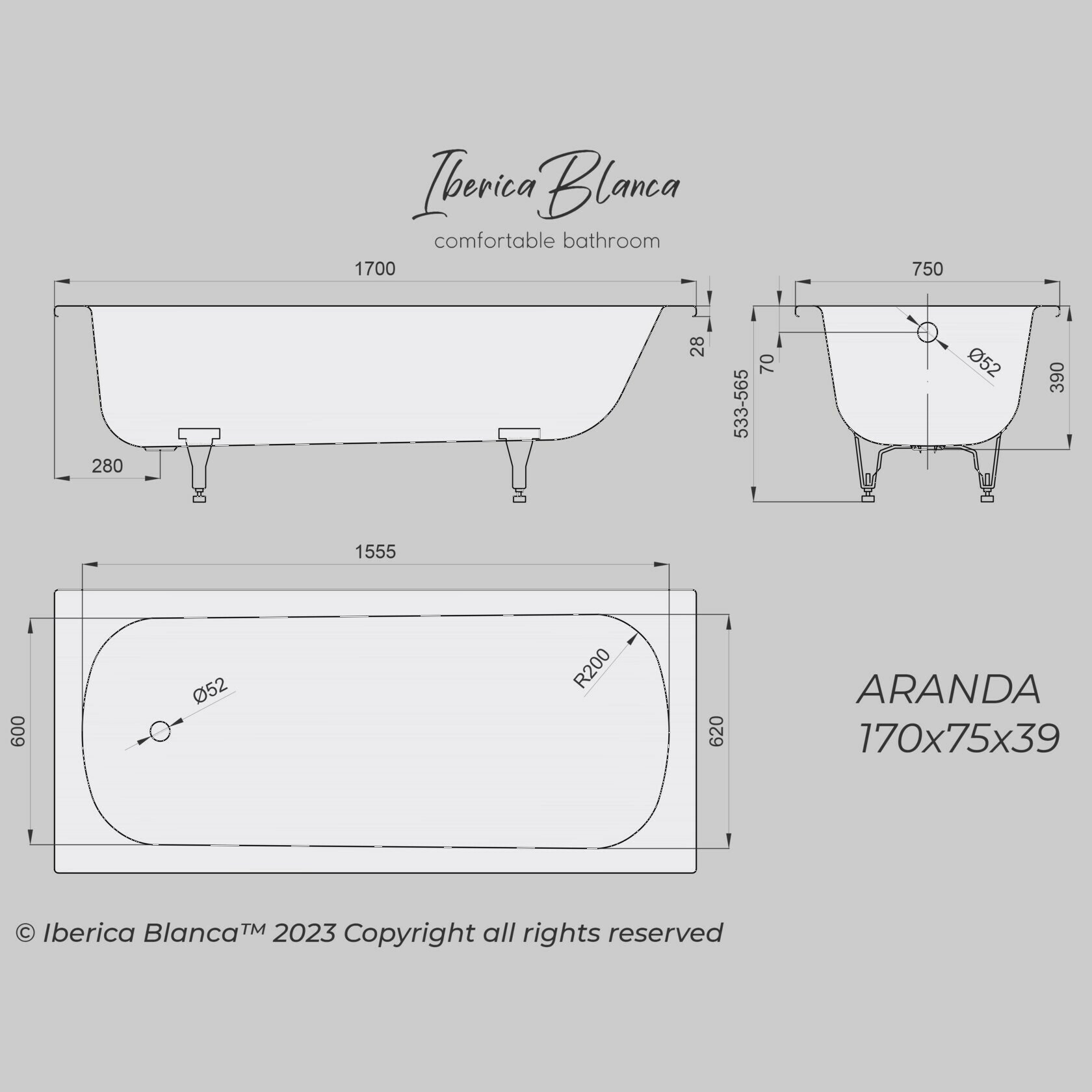 Iberica Blanca Ванна Стальная, ARANDA 1700x700, Standard Gauge - 2,0мм, Iberica Blanca информация: