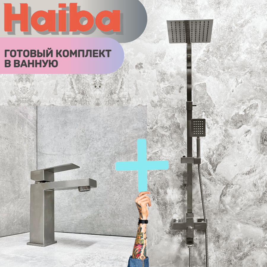 Отзывы на Душевая система и Смеситель для раковины HAIBA HB24803+HB10803-2, материал: нержавеющая сталь, цвет: стальной/серебристый.