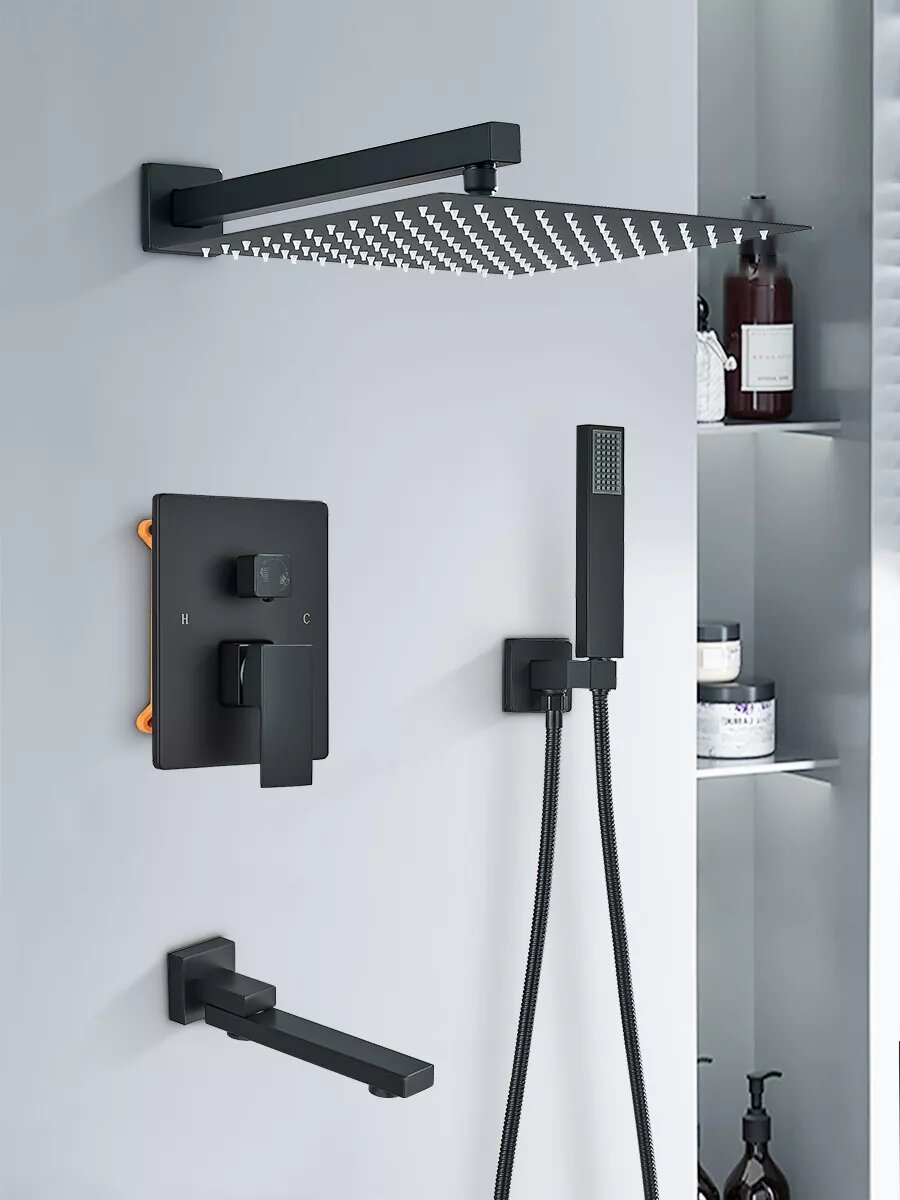 Матовый черный 12 дюймов смеситель для душа в ванной комнате с дождевым водопадом Черная ванна Душевая система Смеситель для настенного монтажа Кран 9 000 ₽