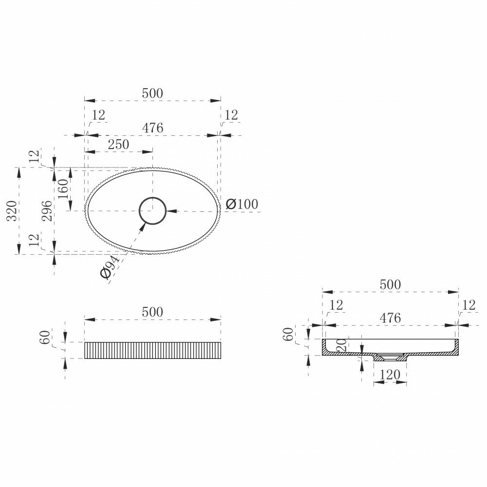 Раковина накладная из натурального камня Black Swan, Espera (59x31)