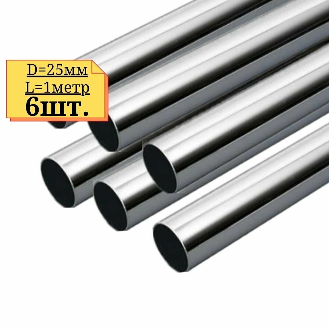 6шт Труба хромированная 25, длина 1метр, диаметр 25мм информация: