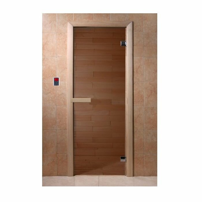 Дверь для бани стеклянная Березка бронза 1900х700 мм хвоя, ручки и петли и коробка в комплекте