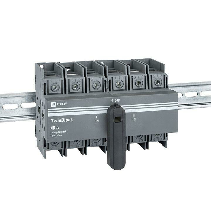 Рубильник 3п 40А реверсивный с рукояткой для прямой установки TwinBlock EKF tb-s-40-3p-rev информация: