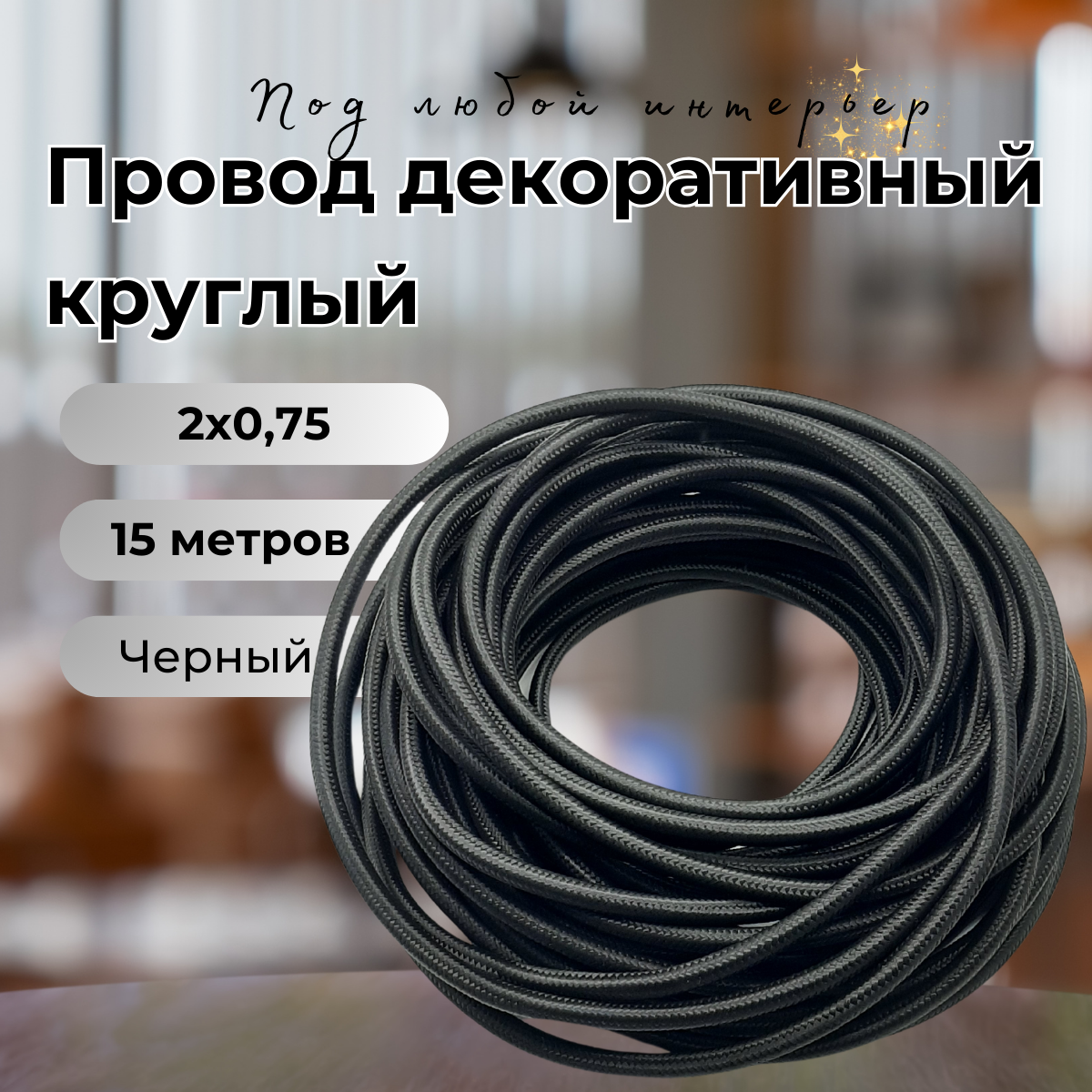 Отзывы на Провод декоративный круглый в тканевой оплетке 2*0,75, 15 м/уп, цвет черный