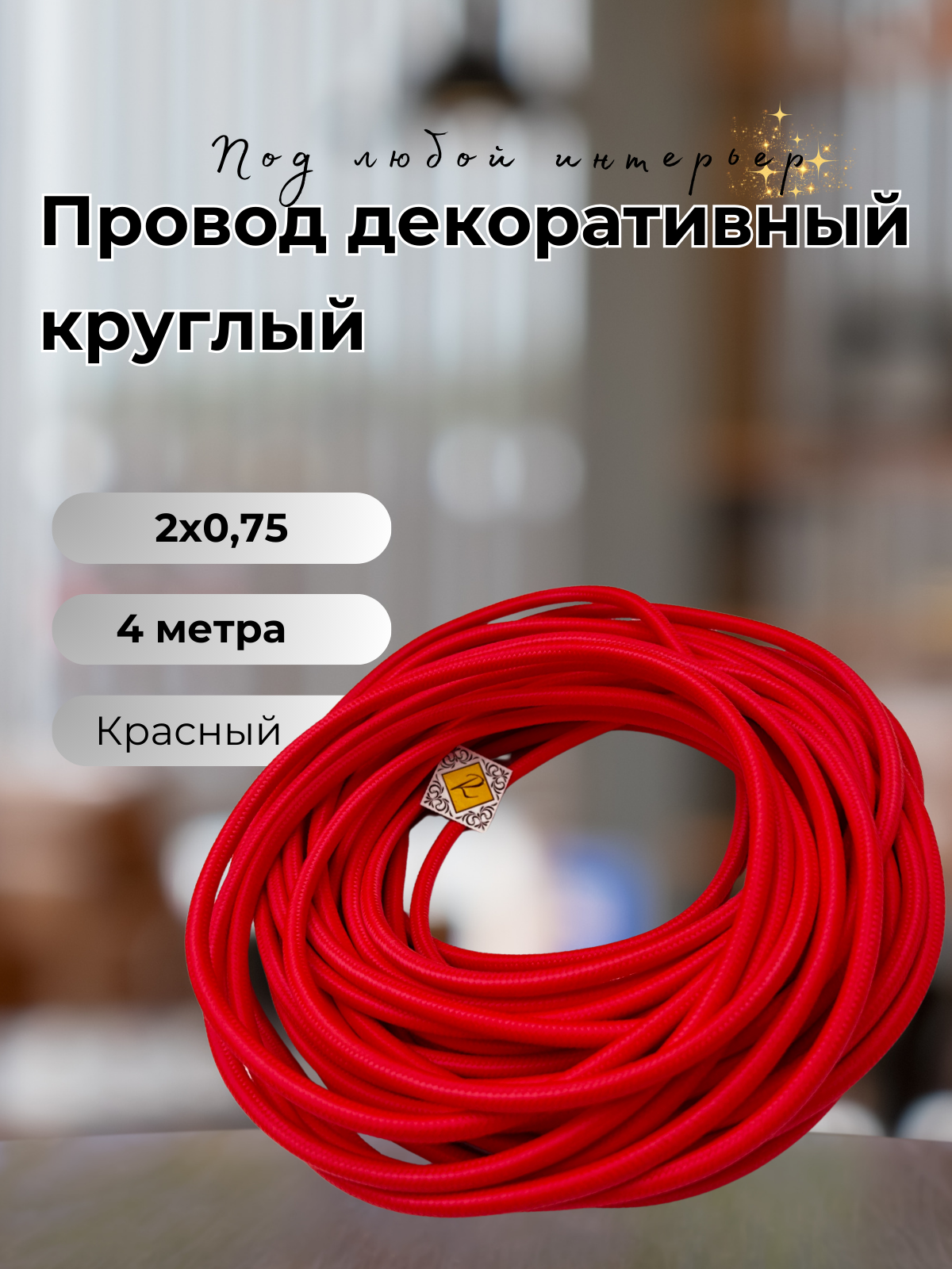 10 цен на Провод декоративный круглый в тканевой оплетке 2*0,75, 4 м/уп, цвет красный