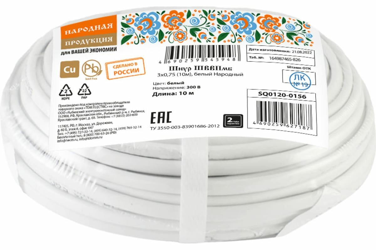 Шнур ШВВП 3х0,75 ГОСТ (10м), белый TDM информация: