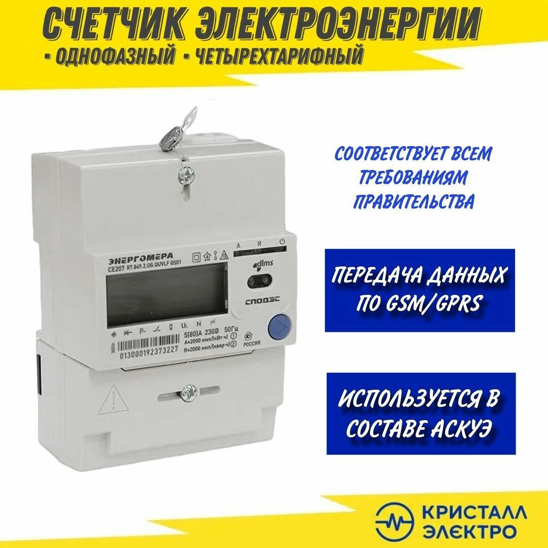 Счетчик 1ф 4т CE207 R7.849.2.OG.QUVLF GS01 5-80А 230В DIN-рейка информация: