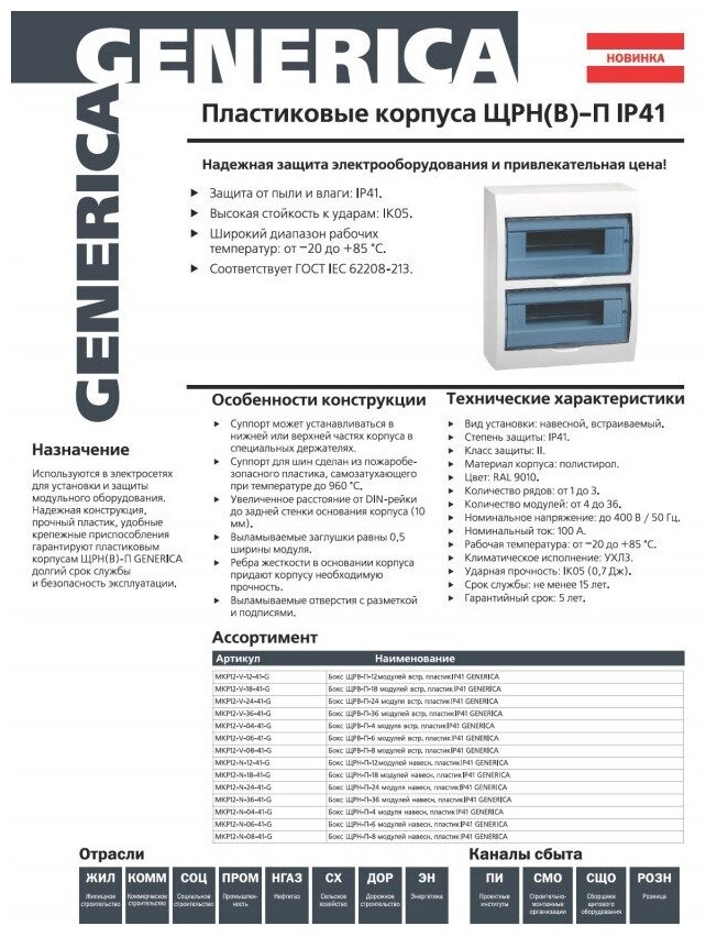 Бокс встраиваемый пластик ЩРВ-П-24 модуля IP41 GENERICA информация: