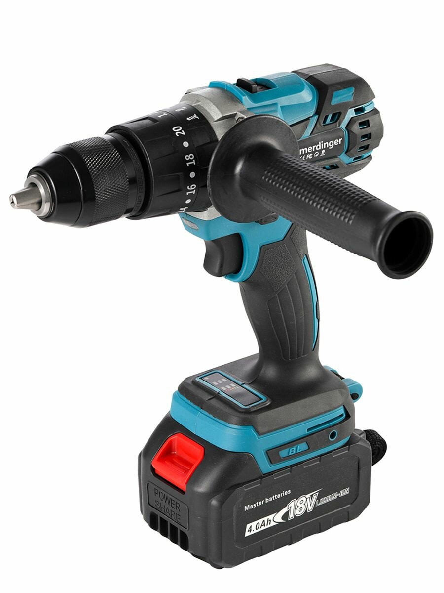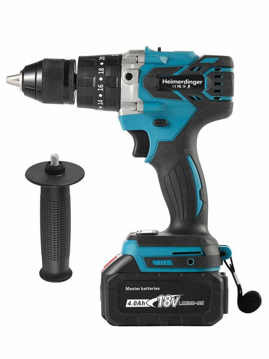 10 цен на Аккумуляторная ударная бесщеточная дрель-шуруповерт Heimerdinger, 18В, 2х4 А·ч Li-Ion, 120 нм, LB176