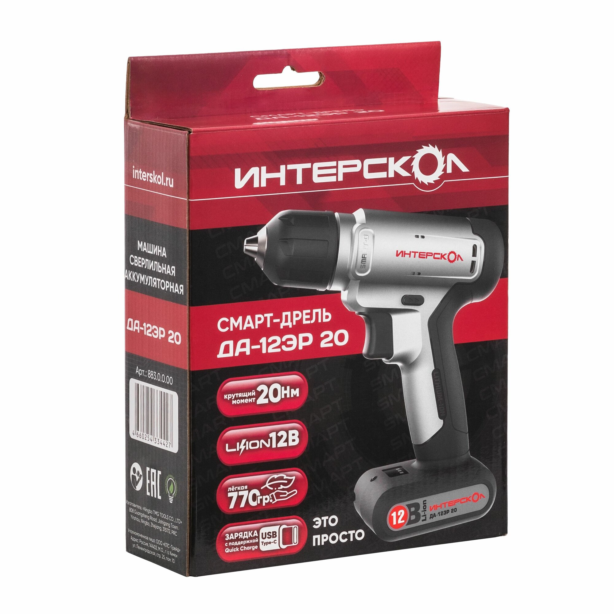 Аккумуляторная дрель SMART Интерскол ДА-12ЭР 20 883.0.1.00 информация: