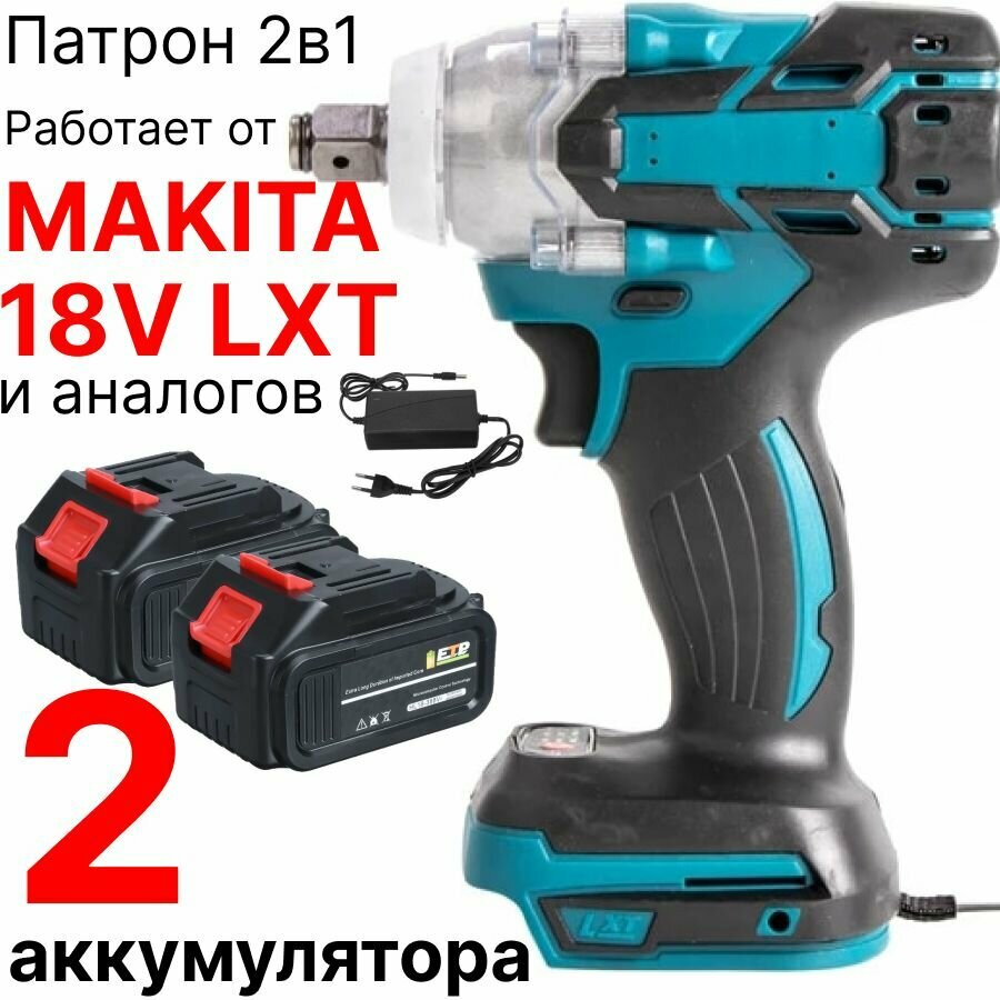Гайковерт / винтоверт / аккумуляторный ударный бесщеточный 18V, патрон 1/2 с вн. шестигранником, с 2 АКБ, совместим с АКБ Makita 18V LXT информация: