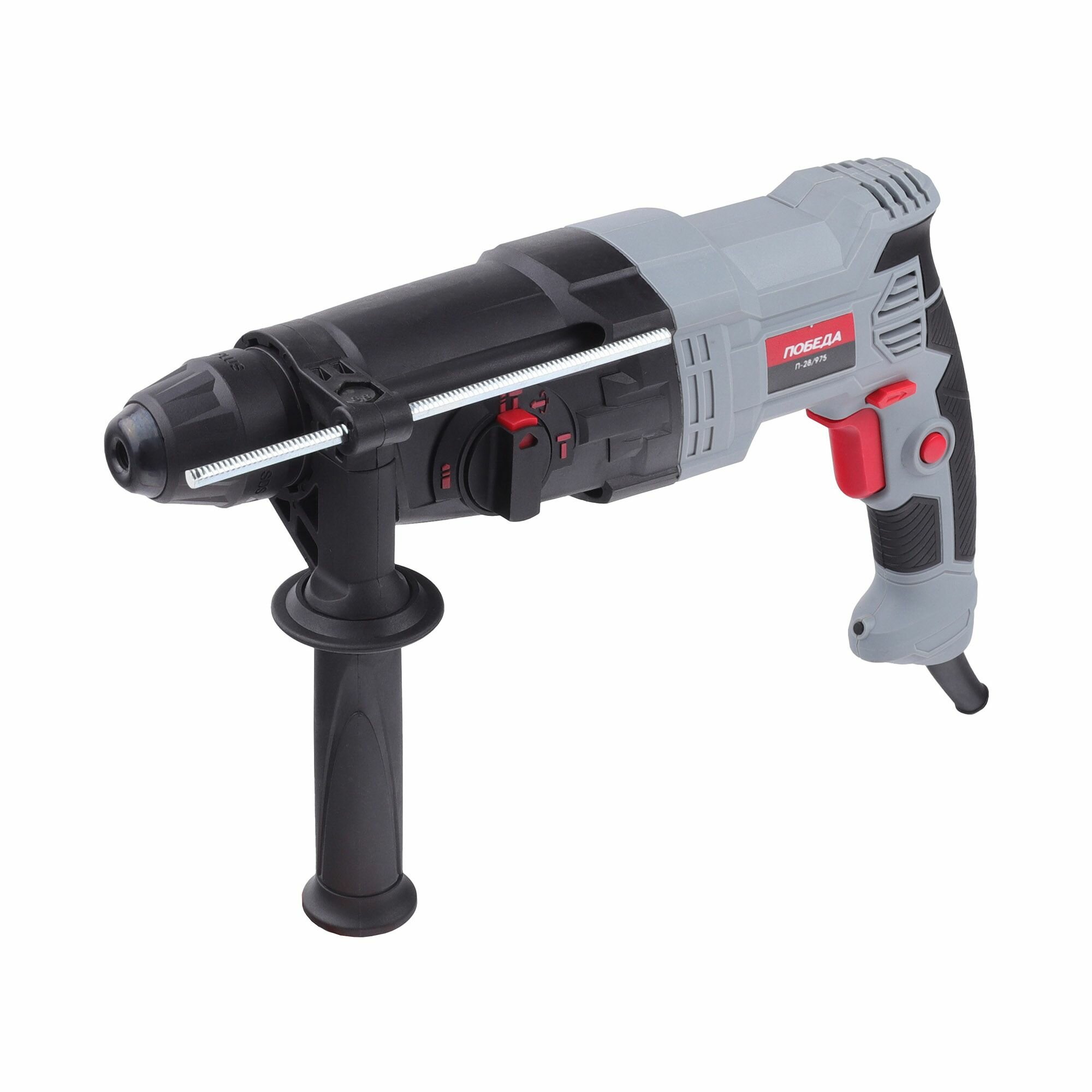 Перфоратор победа П-28/975 (SDS+, 975Вт, макс. диаметр бурения 28 мм, 1200 об/мин, 5300 уд/мин, дополнительная рукоятка, глубиномер, кейс), арт. 140300985