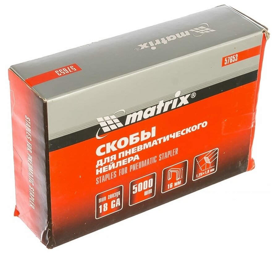 10 цен на Скобы Matrix 18GA для пнев. степлера 1,25х1, 0мм длина 16 мм ширина 5, 7 мм, 5000 шт 57653