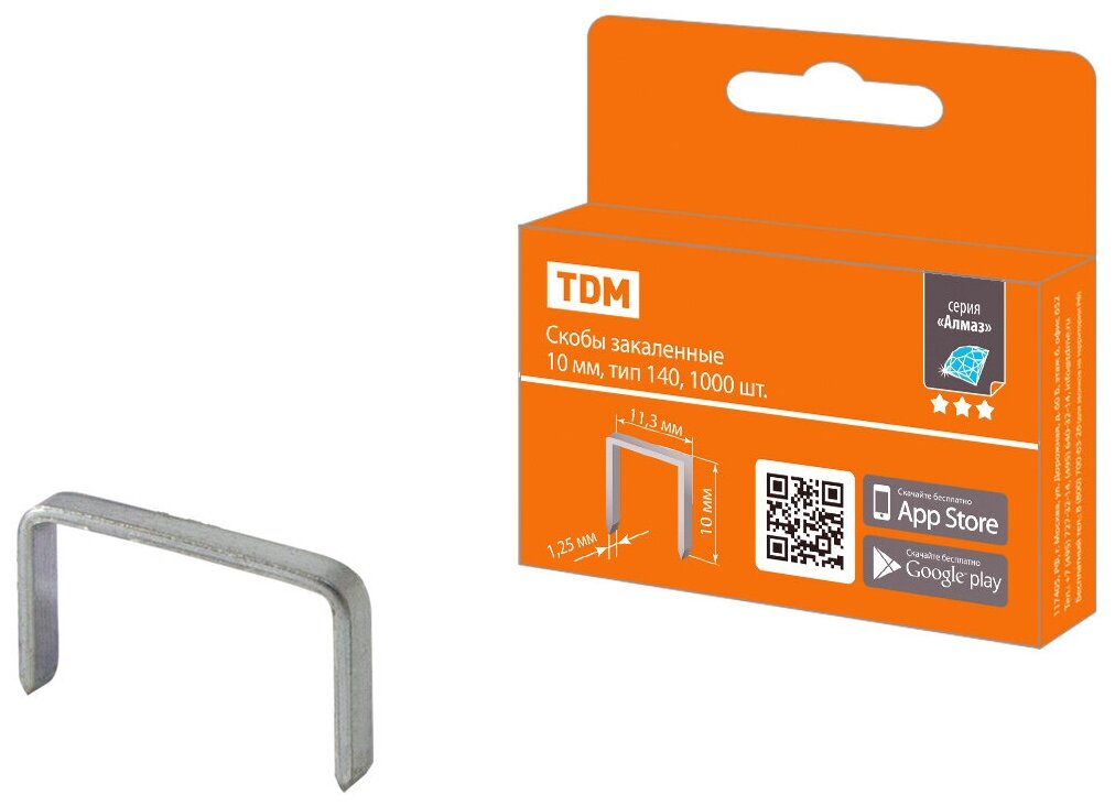 TDM Скобы закаленные 10 мм, тип 140, 1000 шт, "Алмаз" SQ1038-0202 информация:
