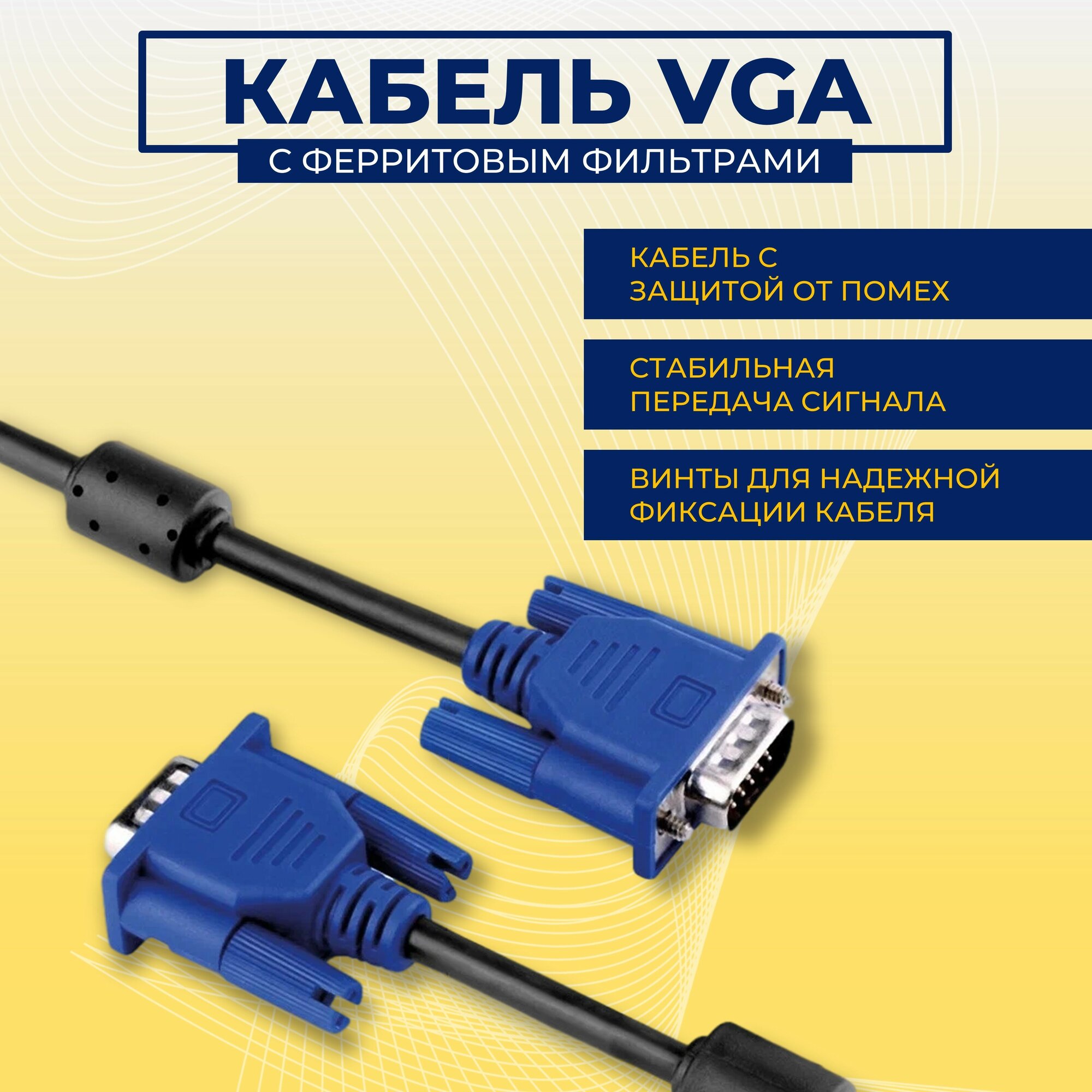Отзывы на Кабель для подключения периферийных устройств VGA - VGA 1.5 м для передачи аналогового видеосигнала