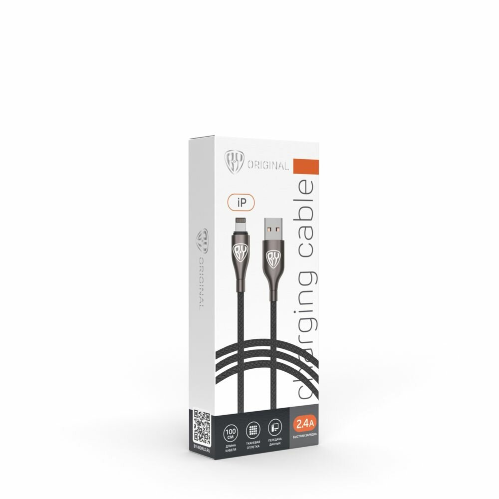 BY Кабель для зарядки Керамика iP, 1м, 2.4А, Быстрая зарядка, тканевая оплётка, черный информация: