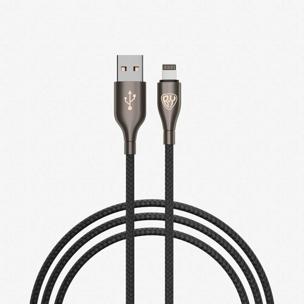 10 цен на BY Кабель для зарядки Керамика iP, 1м, 2.4А, Быстрая зарядка, тканевая оплётка, черный