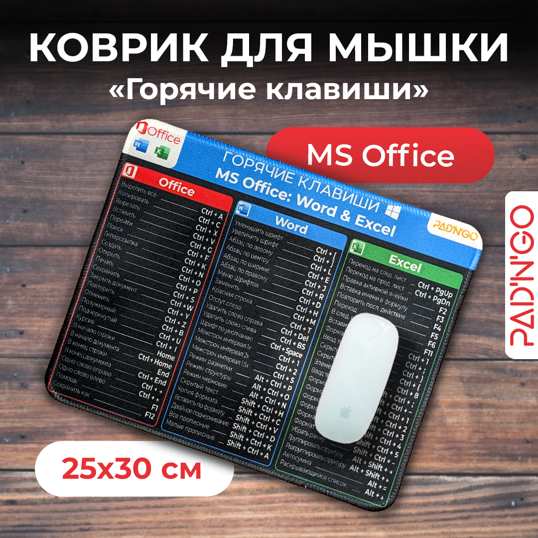 10 цен на Коврик для мышки игровой, 300*250*2 мм, Горячие клавиши Windows и Office