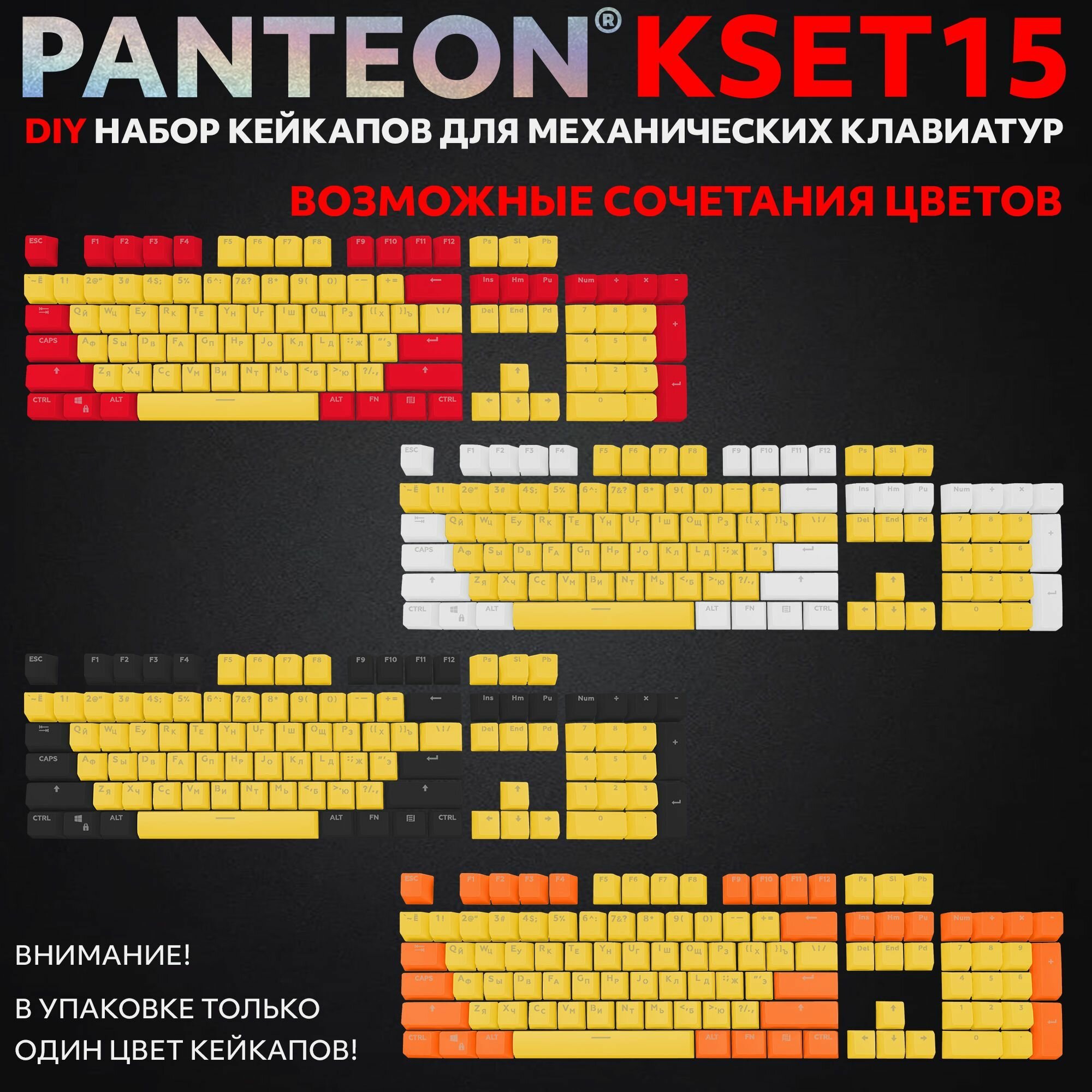 Отзывы на PANTEON KSET15 Yellow Универсальный набор кейкапов для механических клавиатур (104 клавиши), цвет: желтый