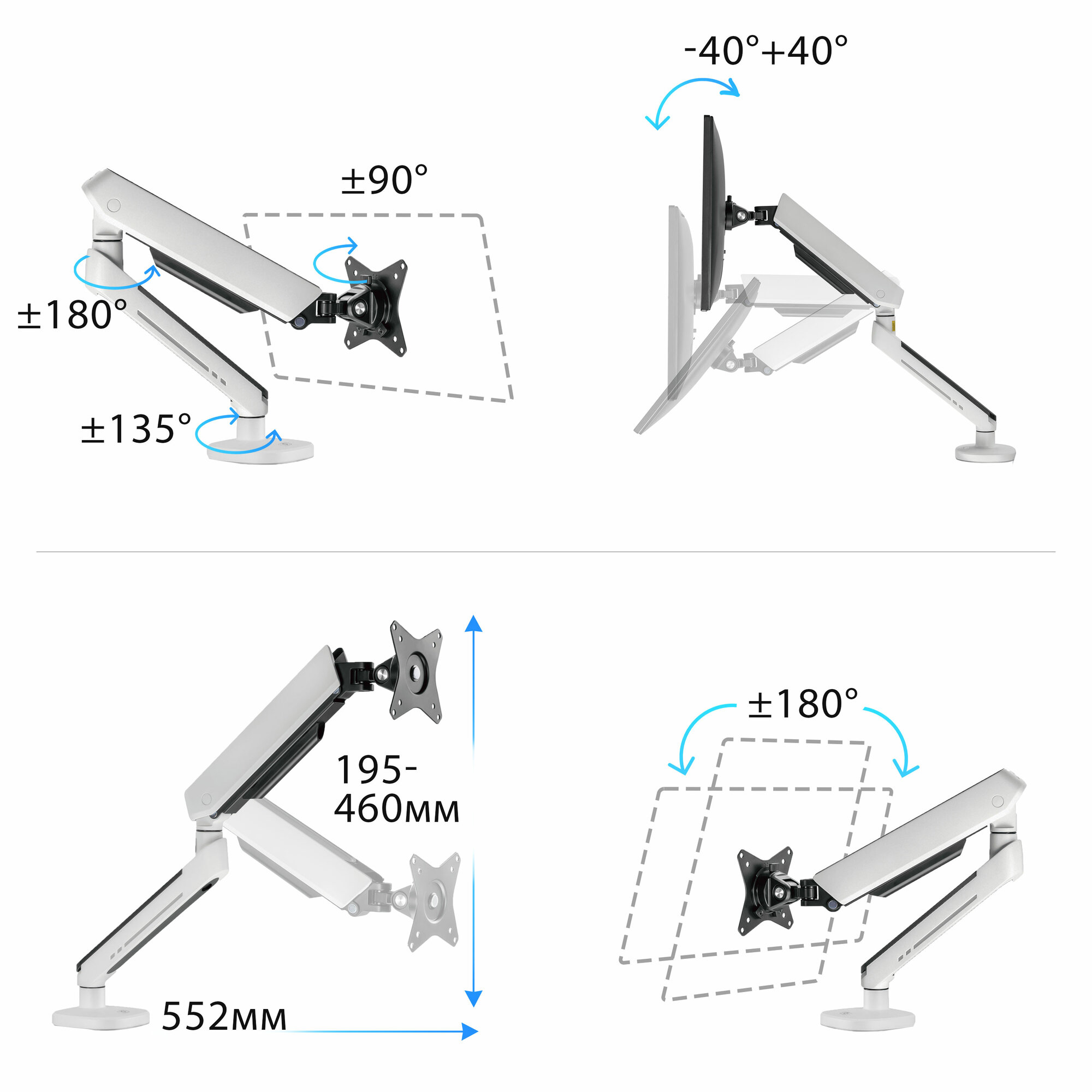 | Тип крепления | наклонное / поворотное / с вращением / с регулировкой высоты |