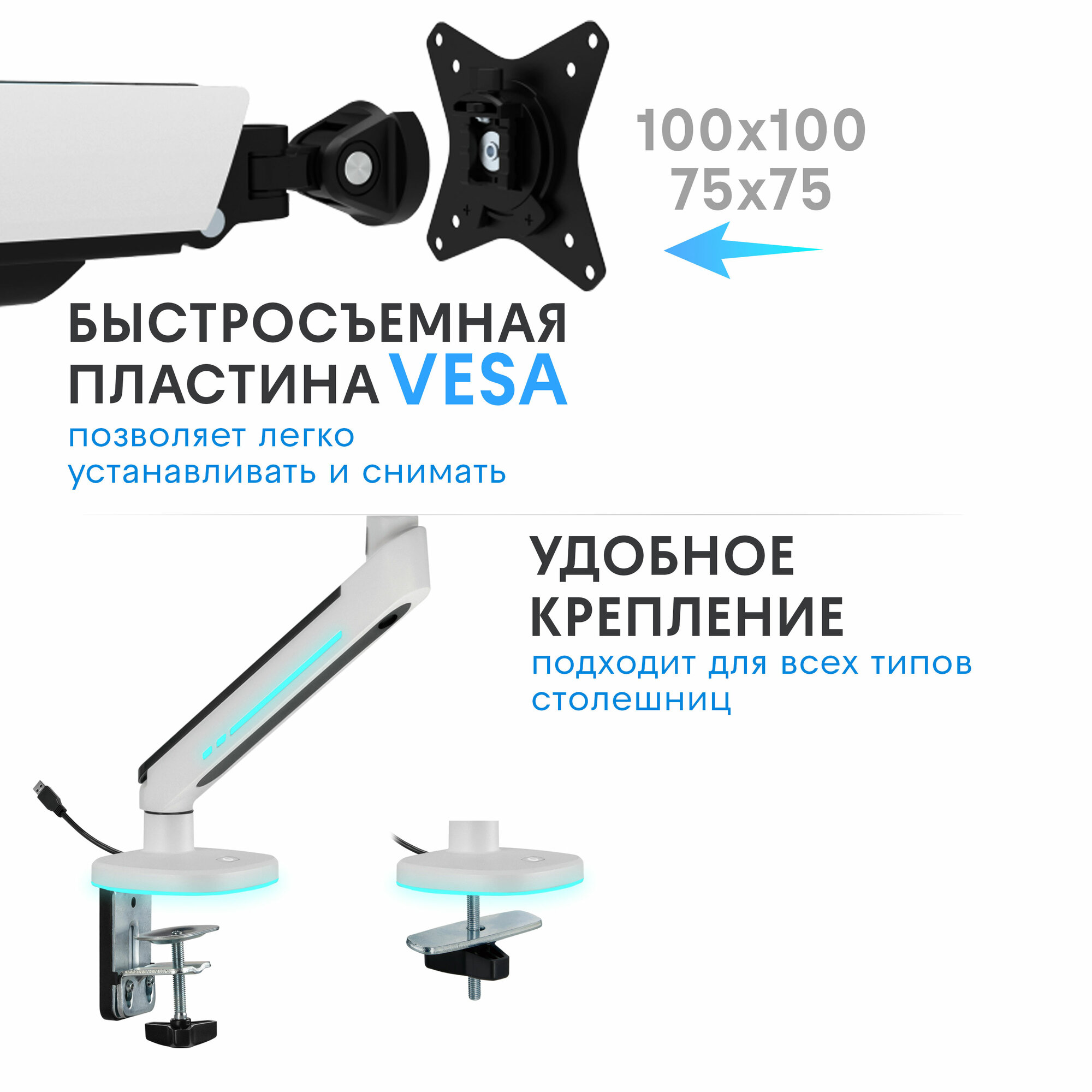 10 цен на Кронштейн для монитора Godoo 27"-45" дюймов настольный с RGB подсветкой LDT54-C012HL Fine Texture White
