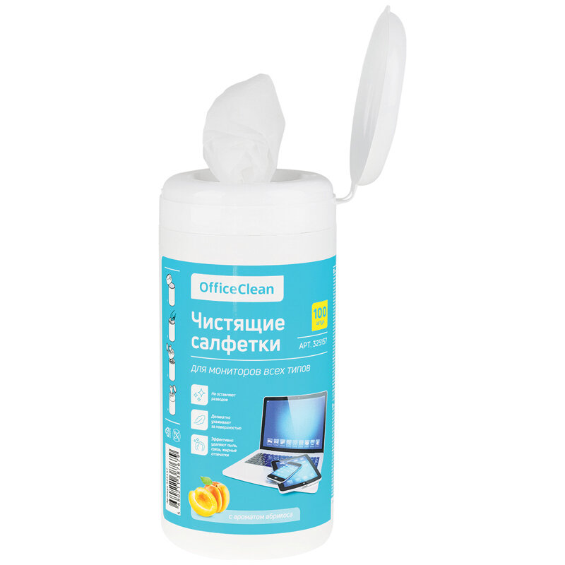 10 цен на Салфетки влажные чистящие 100 штук для экранов мониторов всех типов электроники OfficeClean / салфетки плотные с ароматом абрикоса 13*16 см