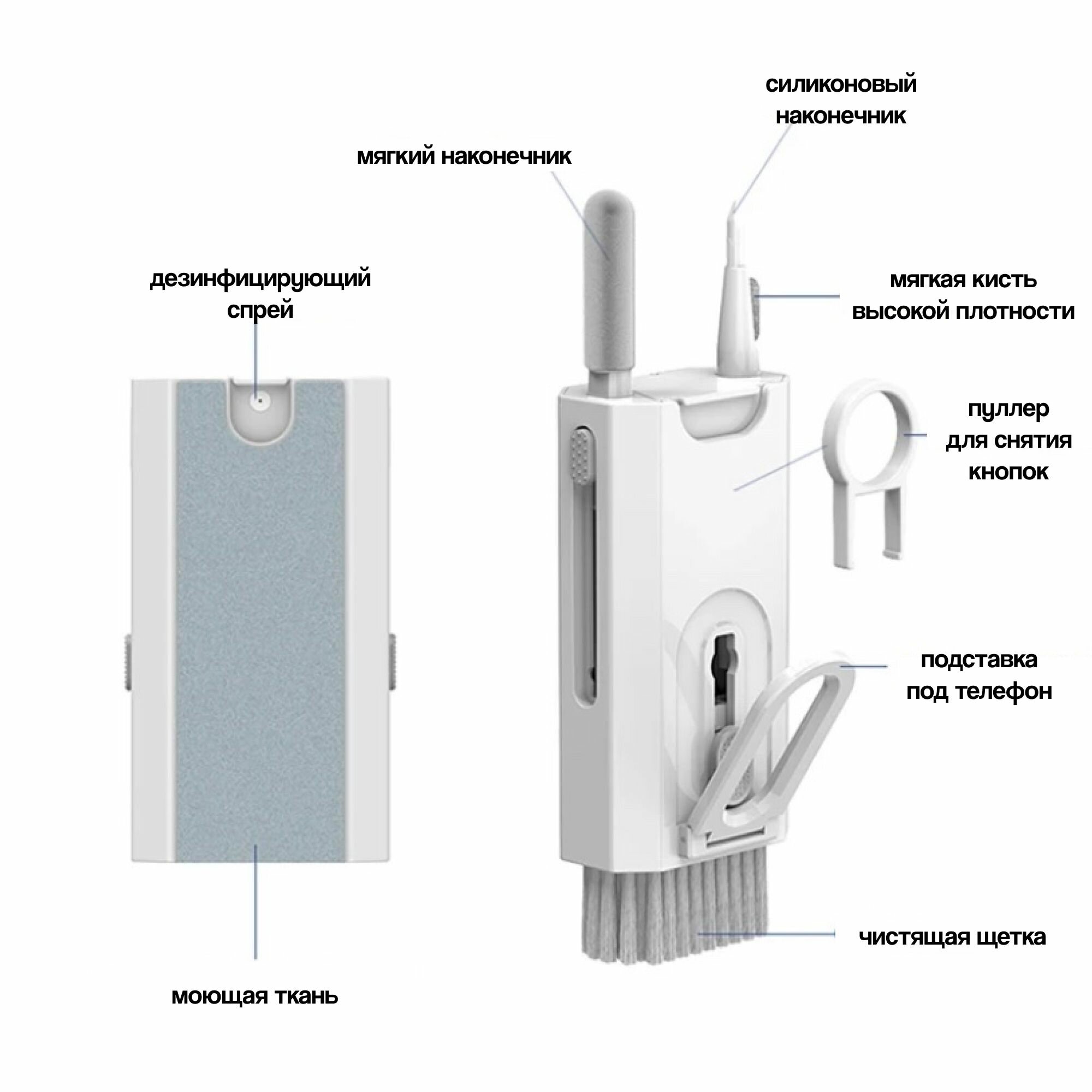 Многофункциональный набор для чистки гаджетов 7в1, белый Don Pavlova, для наушников, для телефона, для клавиатуры