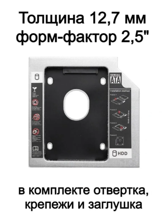 Переходник/корпус/салазки 12,7 мм для жёсткого диска вместо CD/DVD привода ноутбука информация: