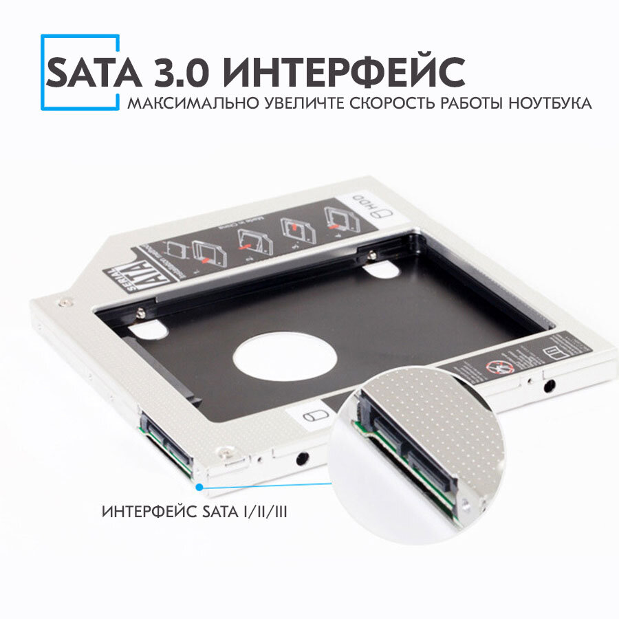 10 цен на Оптибей (Optibay) 9,5 мм / Адаптер салазки переходник для дополнительного жесткого диска HDD/SSD 2.5" SATA для ноутбука в отсек CD/DVD привода