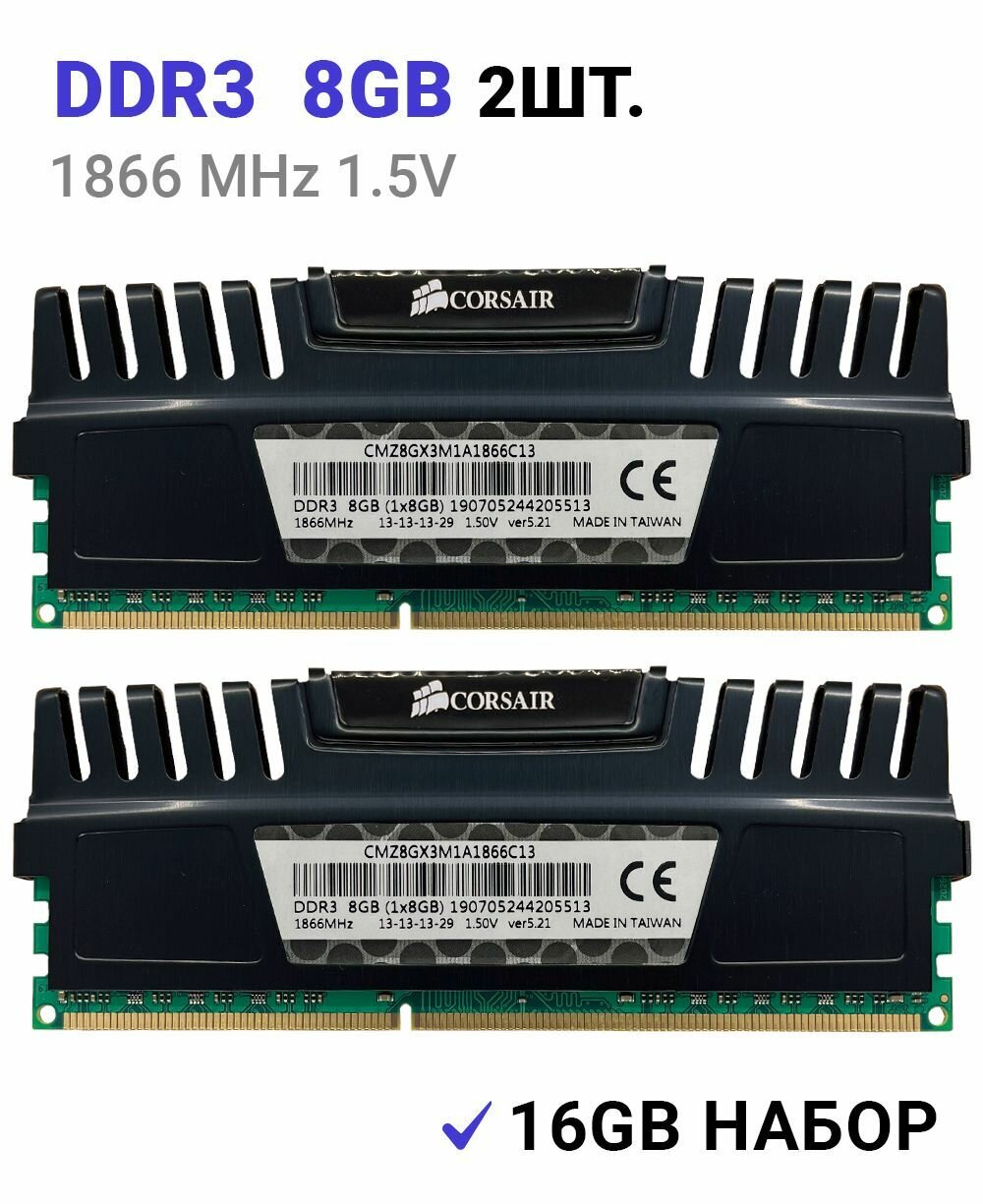 Оперативная память Corsair Vengeance DDR3 1866 Мгц 2x8 ГБ DIMM c Радиатором охлаждения. 2 Штуки