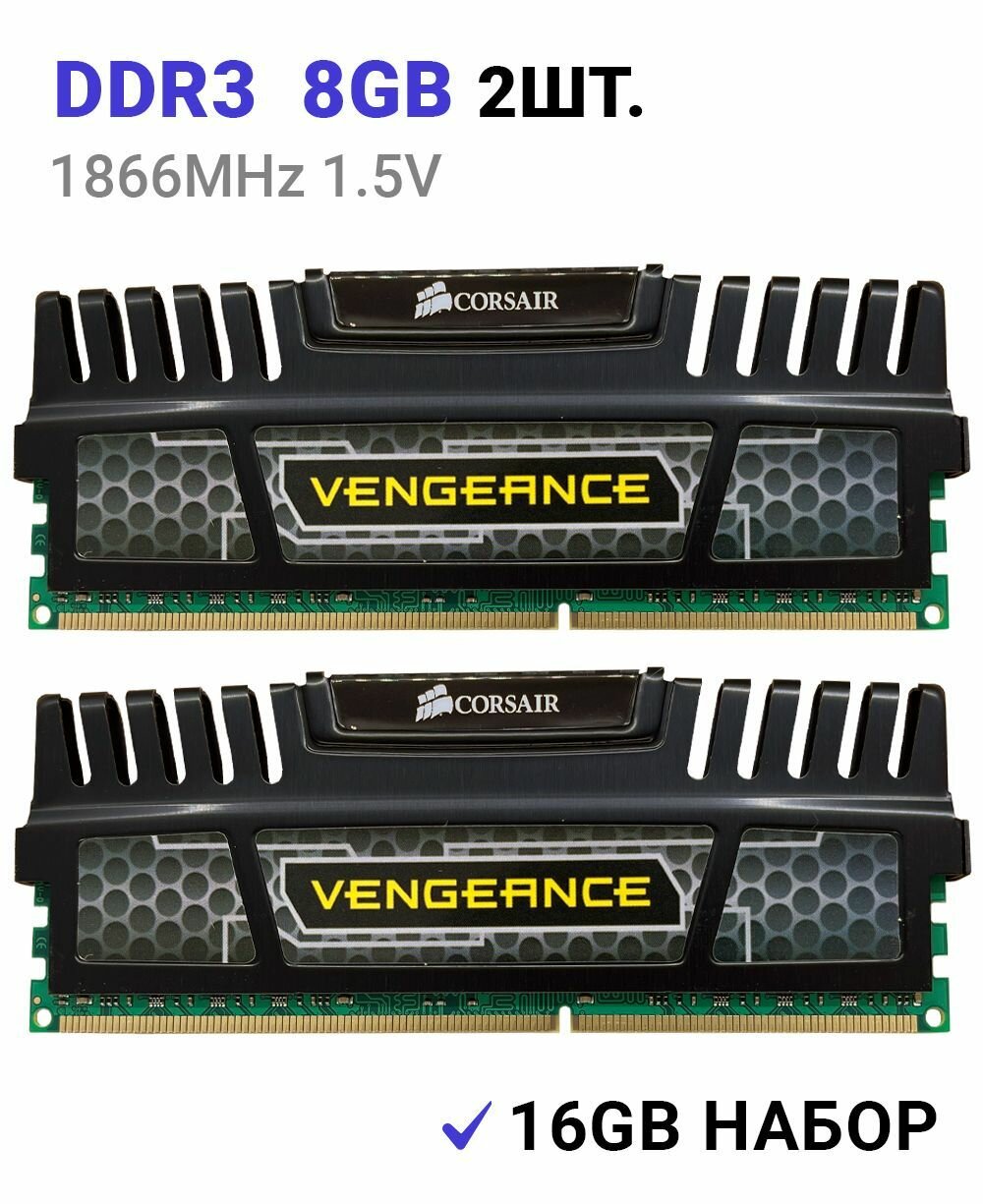 Оперативная память Corsair Vengeance DDR3 1866 Мгц 2x8 ГБ DIMM c Радиатором охлаждения. 2 Штуки информация: