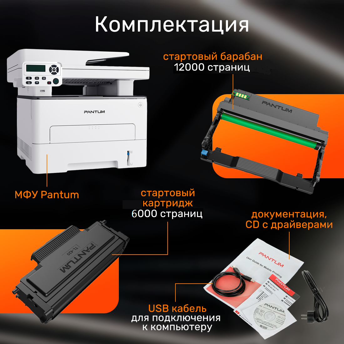 МФУ лазерный Pantum M7108DN, принтер, сканер, копир, двусторонняя печать, LAN, USB информация:
