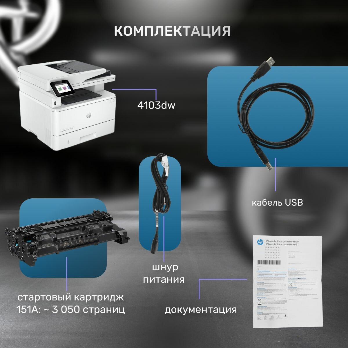 МФУ лазерный HP LaserJet Pro 4103dw принтер, сканер, копир информация: