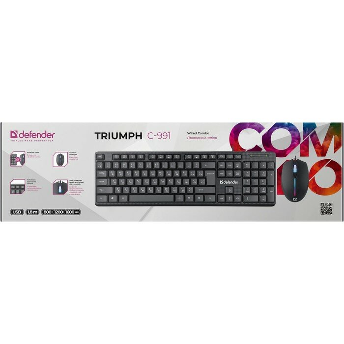 Комплект клавиатура и мышь Defender Triumph C-991, проводн,мембранный,1600 dpi, USB, черный информация: