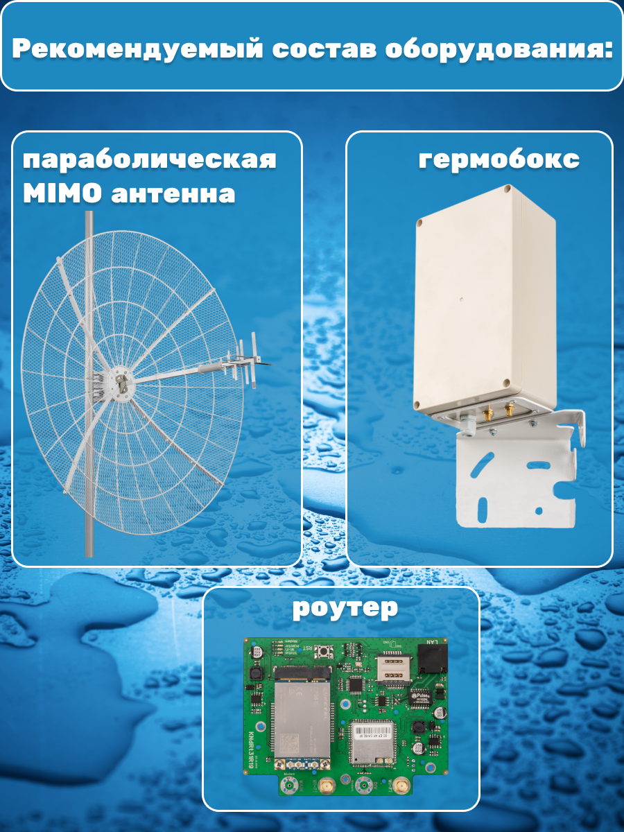 | Совместимость | параболические 3G/4G/Wi-Fi MIMO антенны |