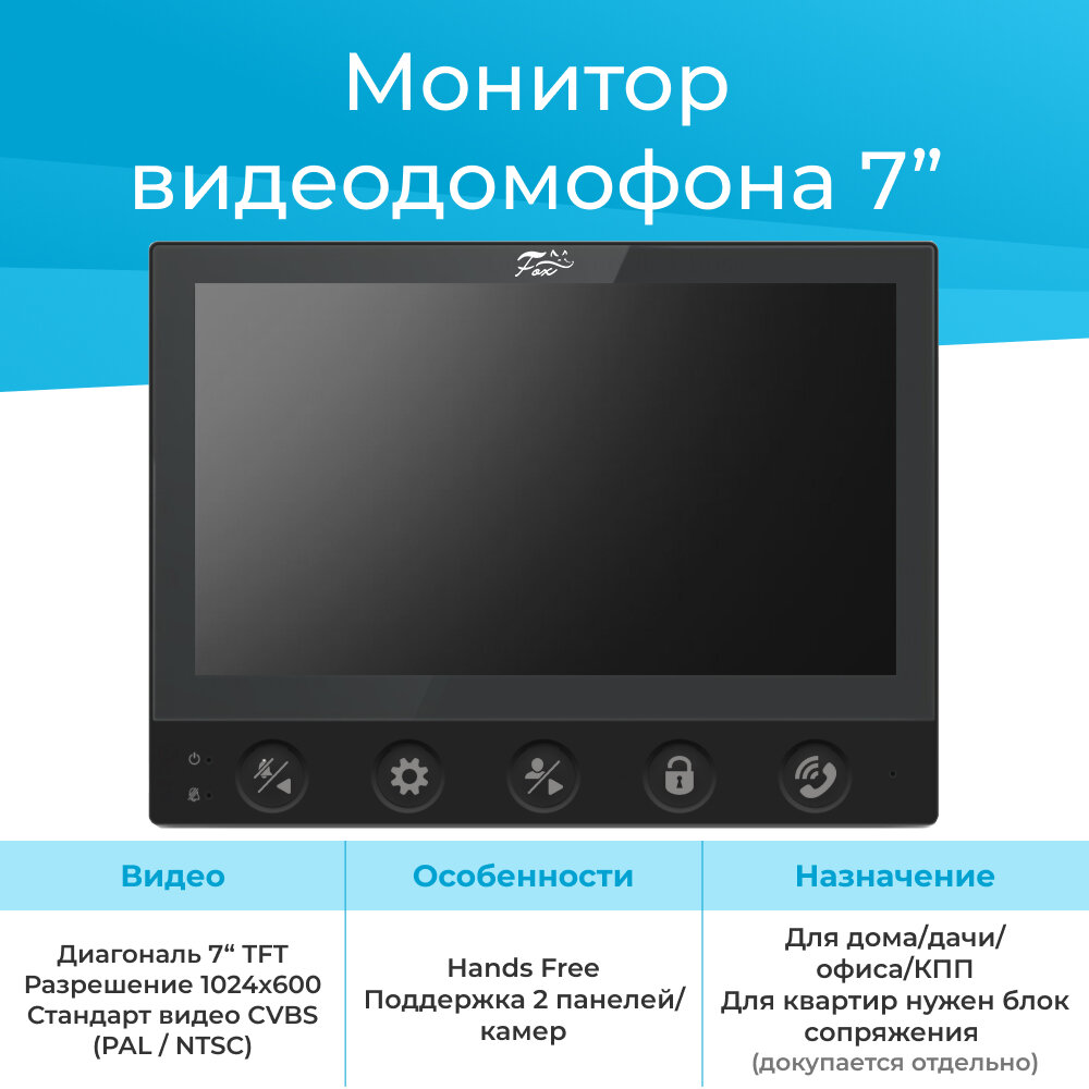 Монитор видеодомофона 7" FOX FX-VD7L ЕЛЬ 7B черный информация: