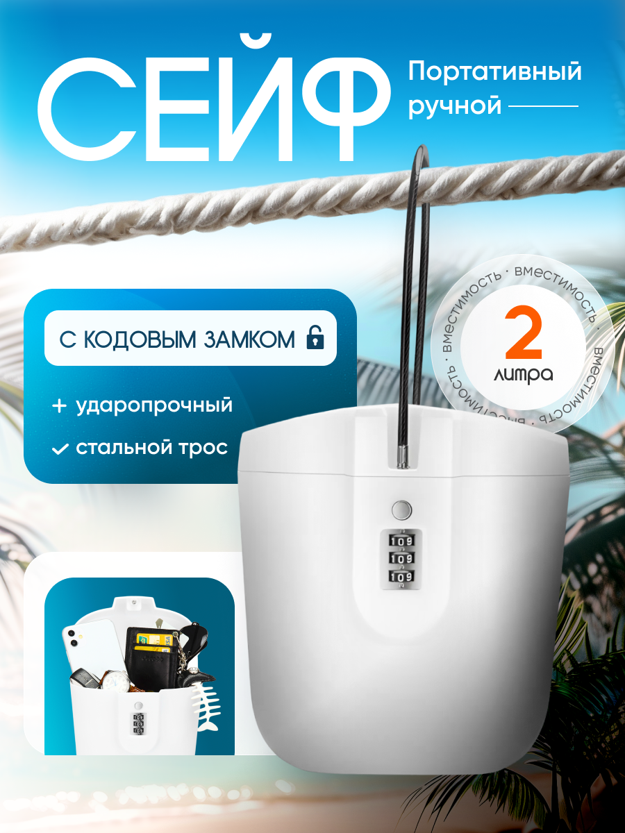10 цен на Переносной кодовый сейф с тросом, объем 2 литра, белый