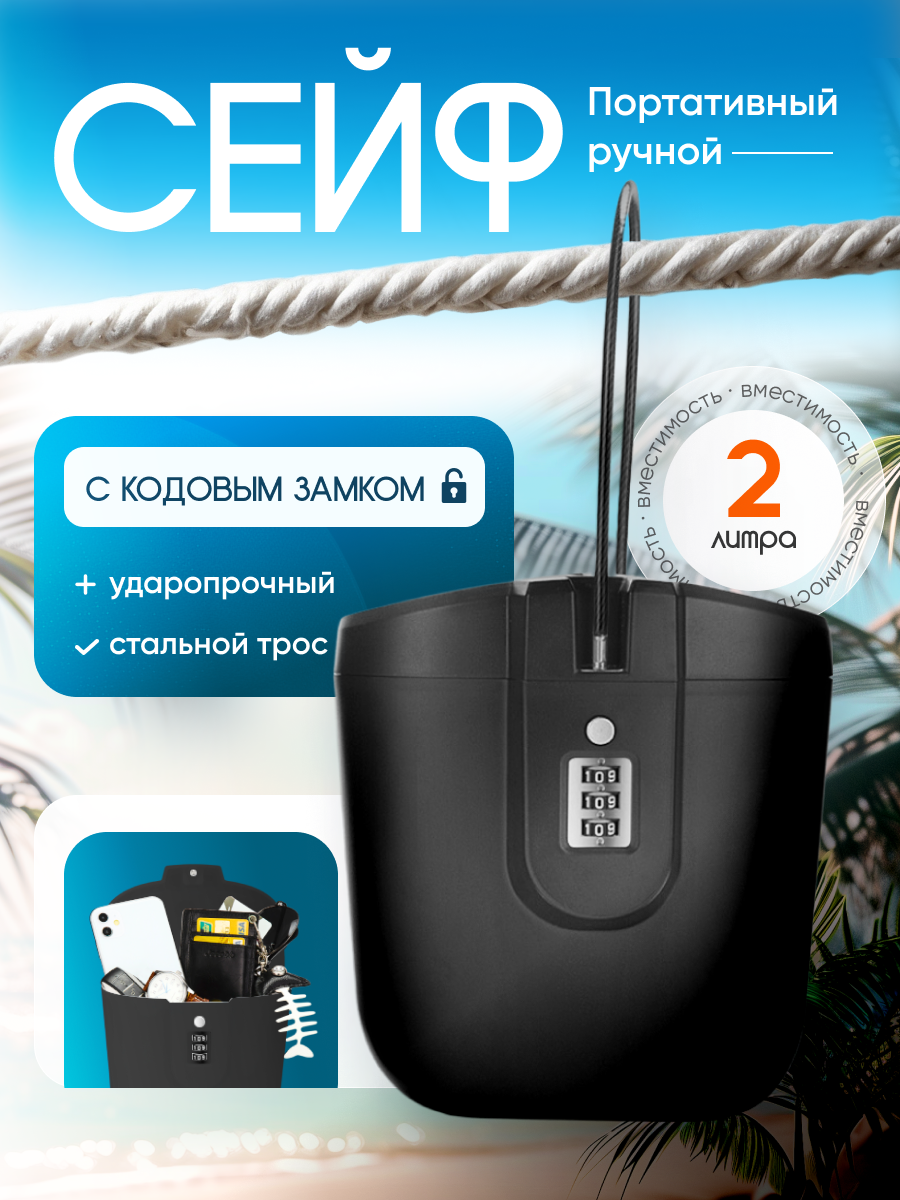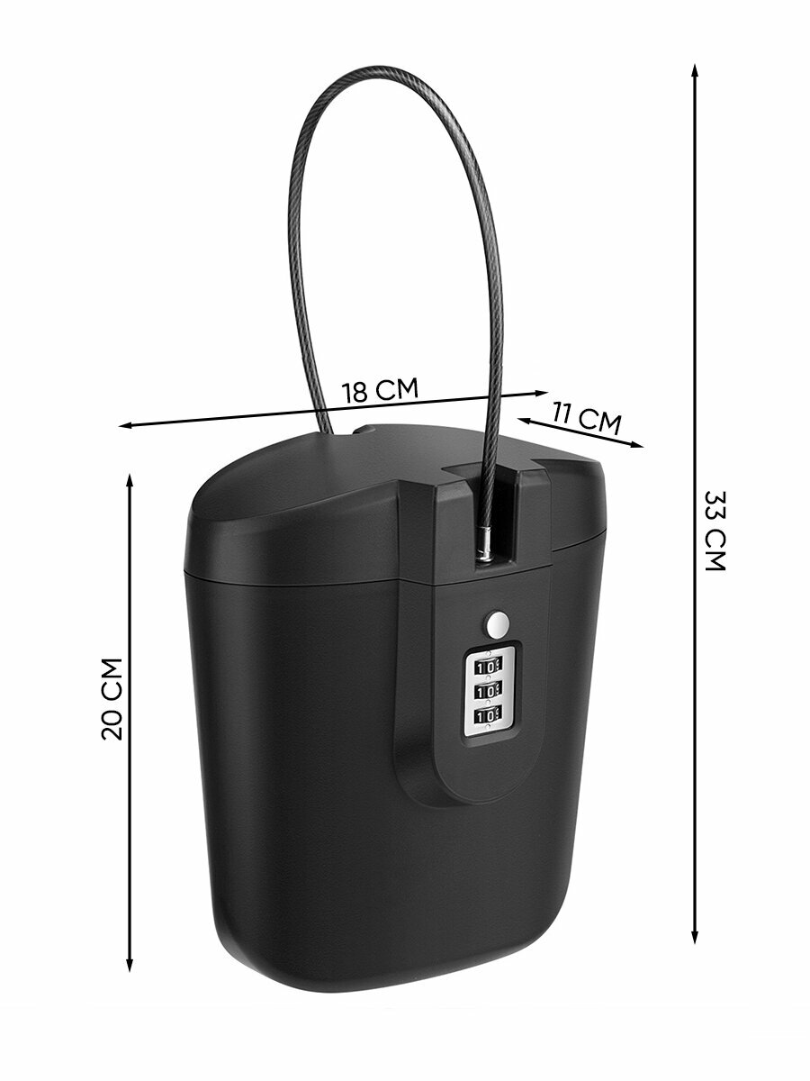 Переносной кодовый сейф с тросом, объем 2 литра, черный информация: