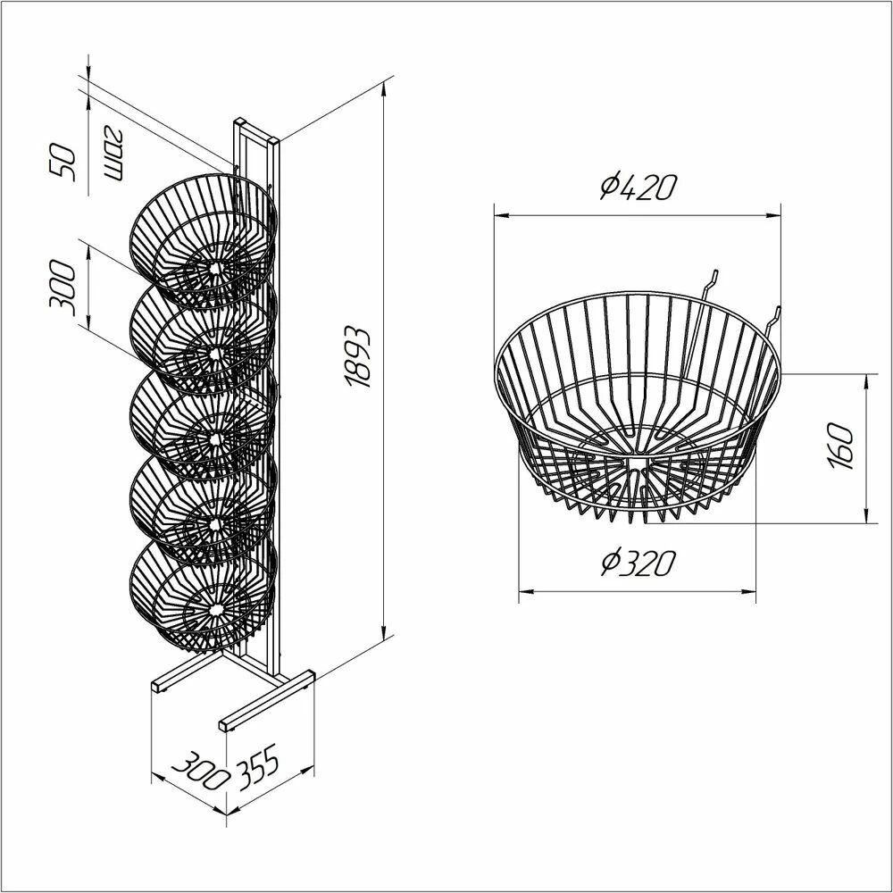 Торговая стойка с круглыми корзинами Торгстойка ПР23 информация: